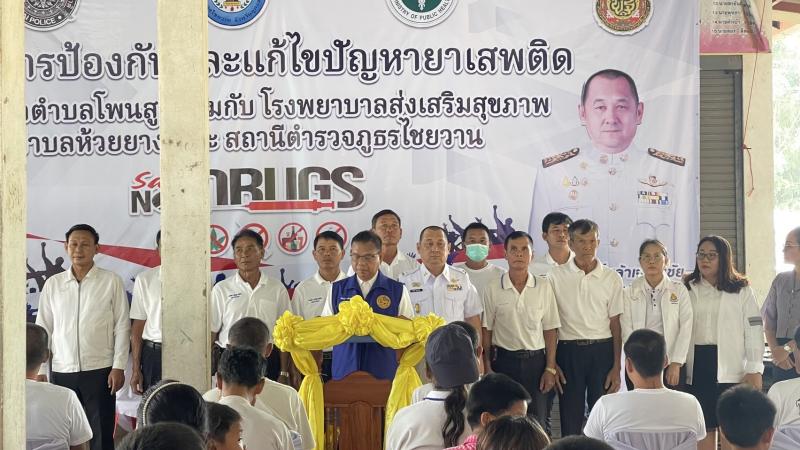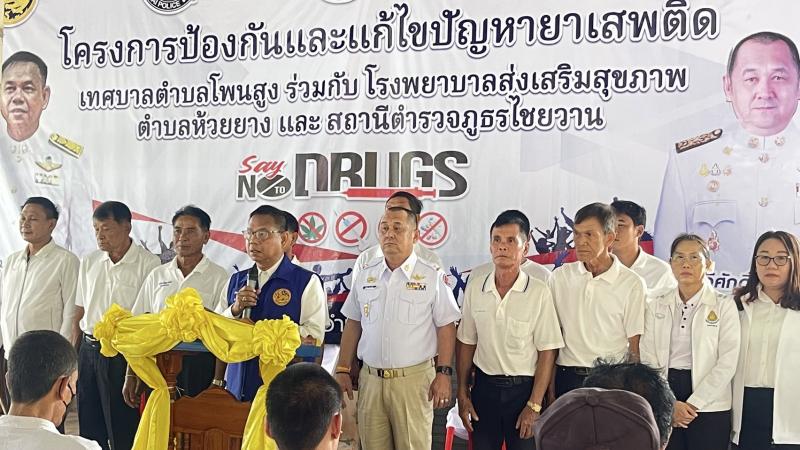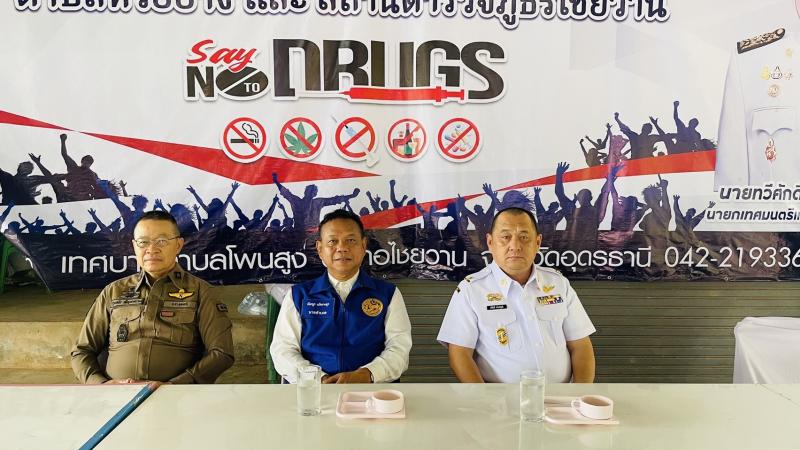 วันที่ 23 กันยายยน 2568 เวลา 09.00 น. นายทวีศักดิ์ เล้าเจริญชัย นายกเทศมนตรี พร้อมด้วย หัวหน้าส่วนราชการ หัวหน้าหน่วยงาน ผู้นำชุมชน อสม. นักเรียน และประชาชน เข้าร่วมโครงการป้องกันและแก้ไขปัญหายาเสพติด โดยได้รับเกียรติจาก นายบัณฑูร นริศรางกูร นายอำเภอไชยวาน เป็นประธานปิดโครงการ ซึ่งโครงการนี้จัดขึ้นโดยเทศบาลตำบลโพนสูง ร่วมกับโรงพยาบาลส่งเสริมสุขภาพตำบลห้วยยาง และสถานีตำรวจภูธรอำเภอไชยวาน ตามนโยบายเร่งด่วนของรัฐบาล “No Drugs No dealers” ผลึกกำลัง สร้างหมู่บ้านชุมชนปลอดยาเสพติด ประจำปีงบประมาณ 2568 ณ ศาลากลางบ้าน บ้านป่าก้าว หมู่ 5 ตำบลโพนสูง อำเภอไชยวาน จังหวัดอุดรธานี